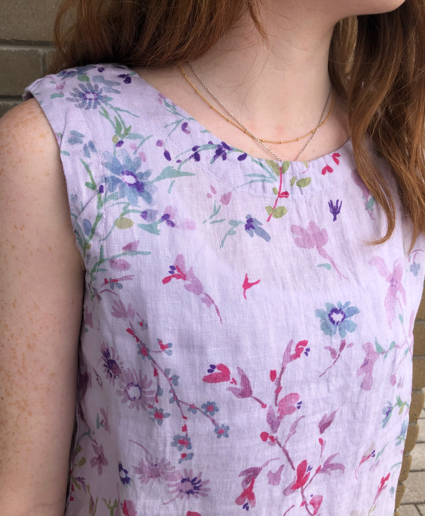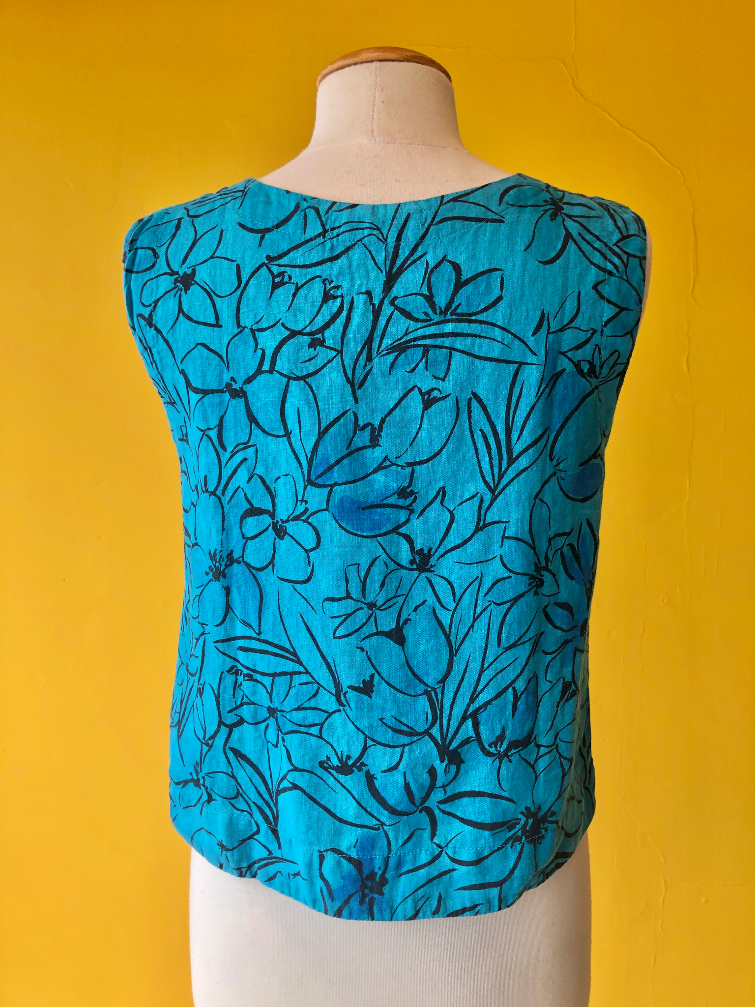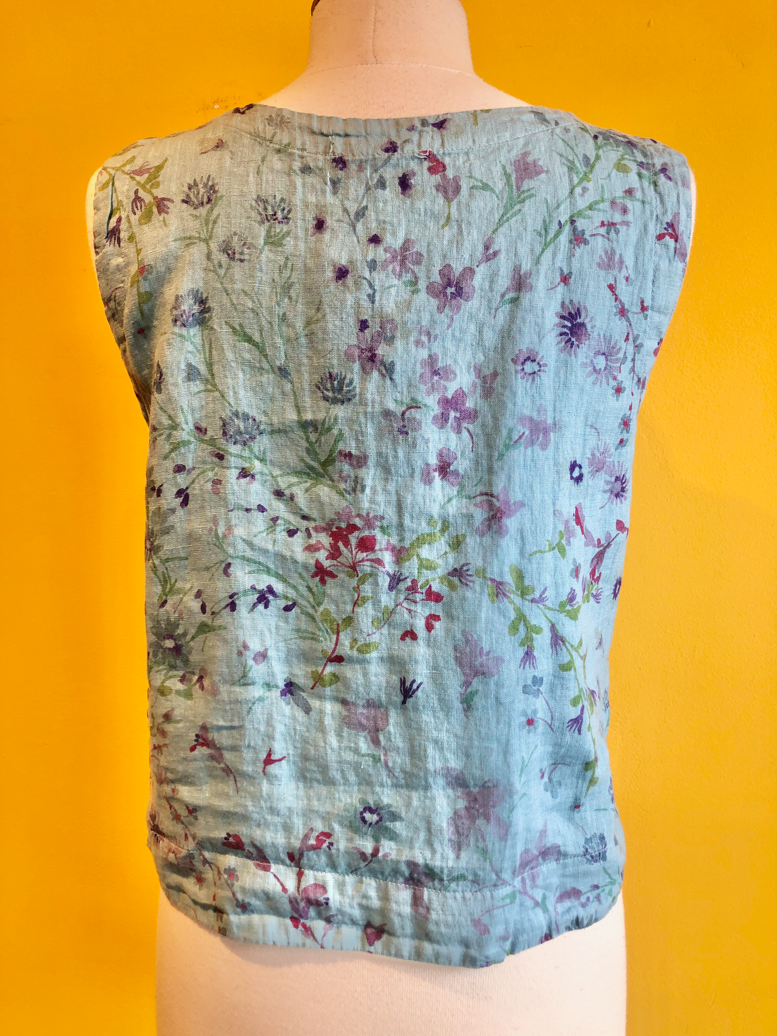 Linen shell with a wide facing at the neck. Available in a variety of prints and colours.