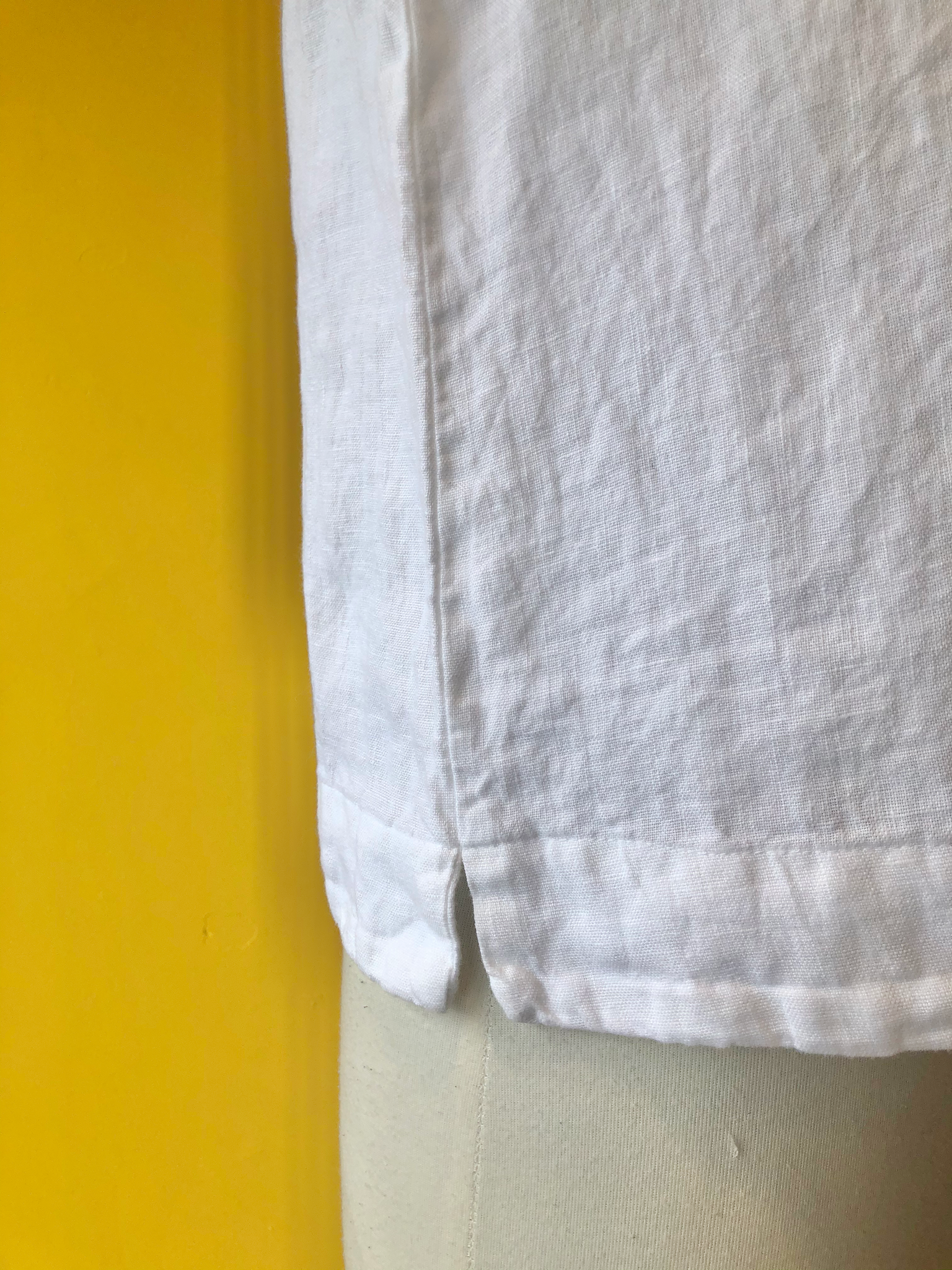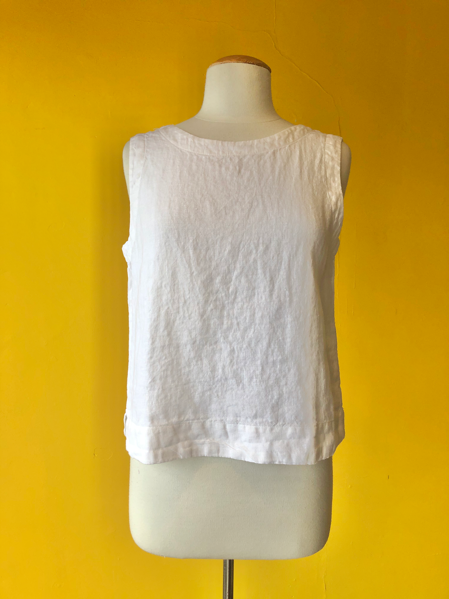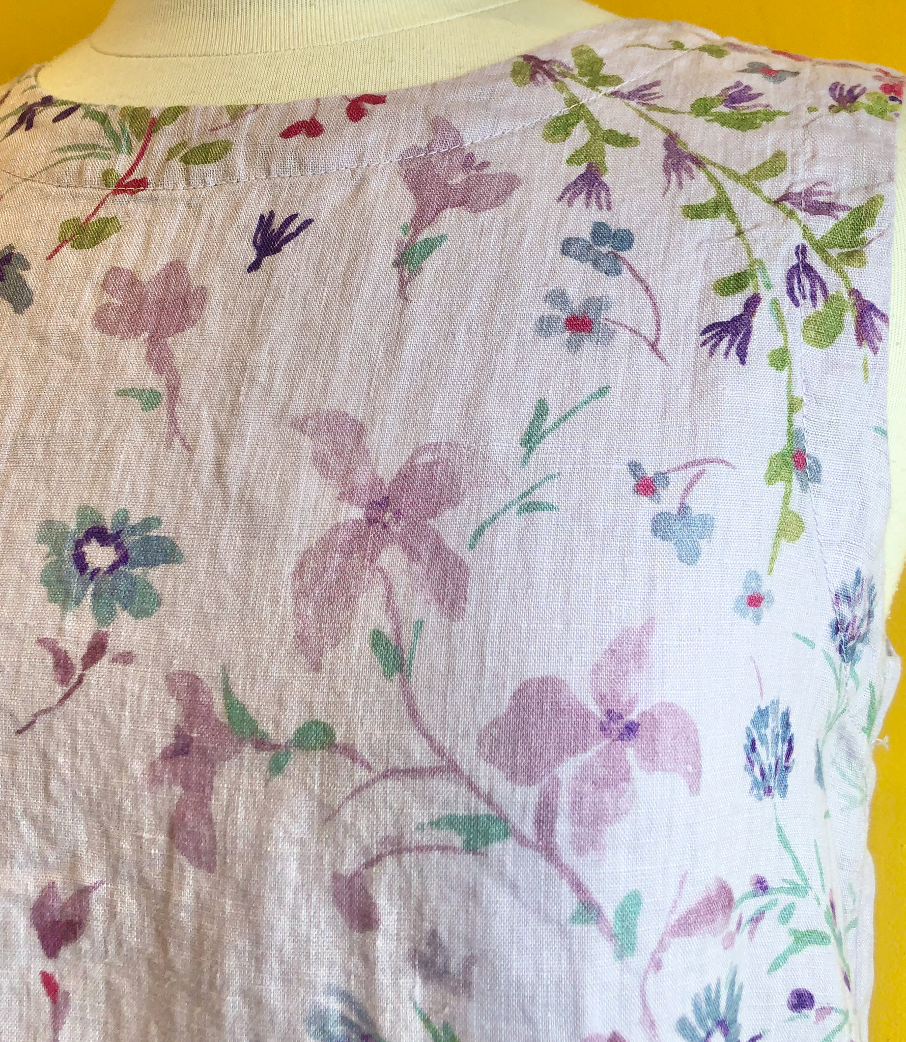 Linen shell with a wide facing at the neck. Available in a variety of prints and colours.