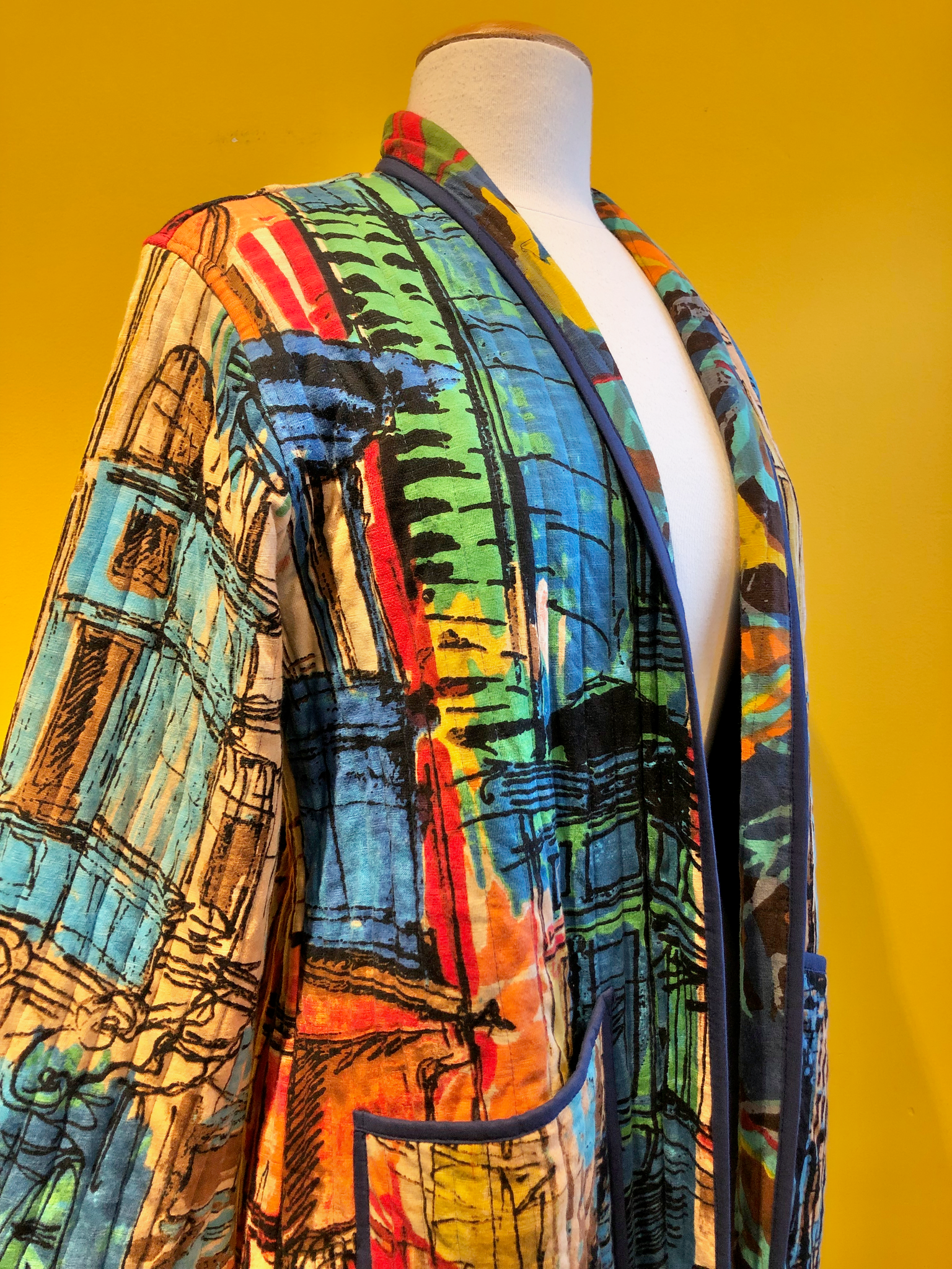 Reversible jacket in the 'Valetta' print with long-sleeves, two interior and two exterior pockets.